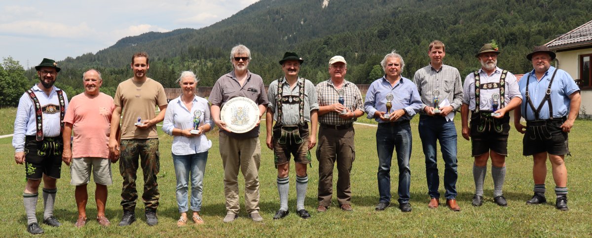 v.l.n.r.: Lorz Rainer (Schützenhauptmann GSK Wor), Pechtold Uwe (1. SM GSK Wor), Korndörfer Sebastian (KpFSG Wor), Kell Gertrud (GSK Königsdorf), Lechner Dieter (GSK Wor, Gewinner der Ehrenscheibe),Schmid Stefan (Gauhauptmann, Stifter der Ehrenscheibe), Langhammer Karl (KpFSK Wor), Schoppel Emil (Spielhahnschützen Aying-Peiß), Deißer Georg (Veteranenverein Thanning), Zimma Franz (GSK Beuerberg), Schmid Anton (GSK Bichl)