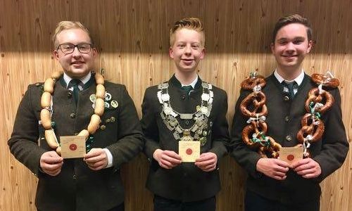 v.l.n.r.: Jugend-Vize-König Mathias Thomas, Jugendkönig Andreas Schmal, Jugend-Brezen-König Florian Schildmann