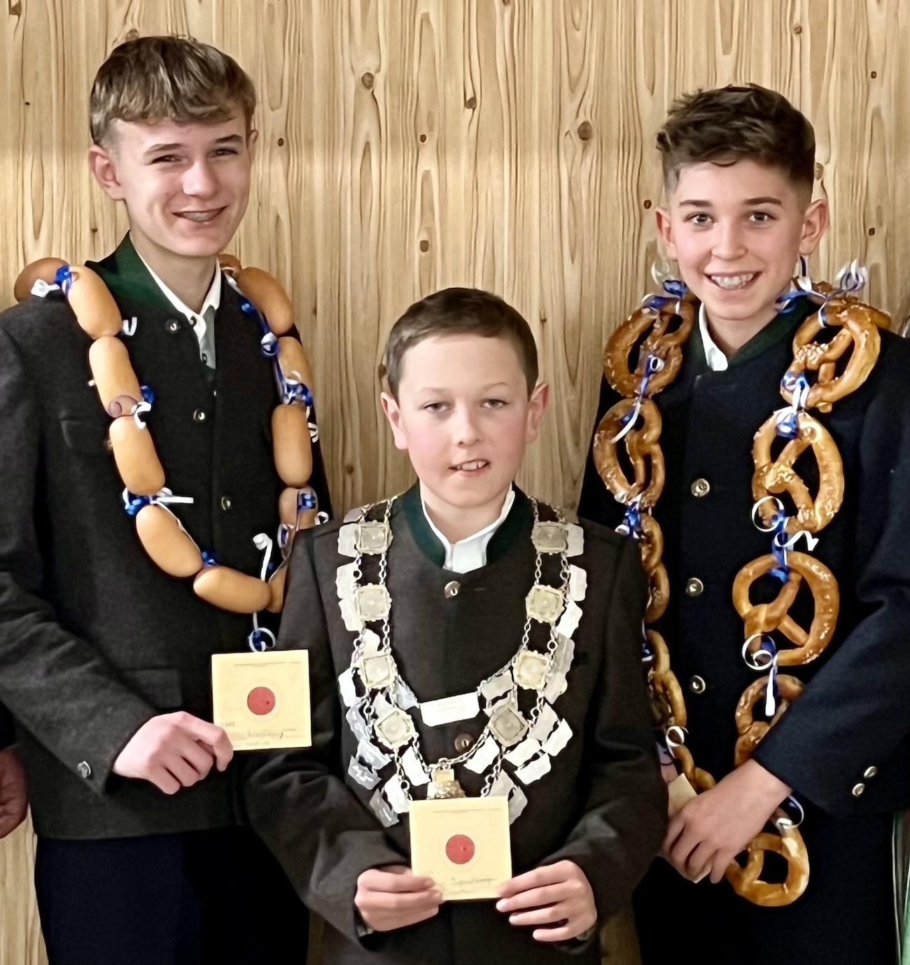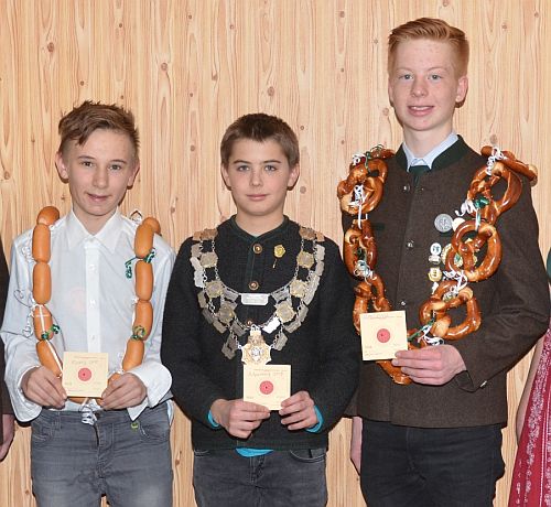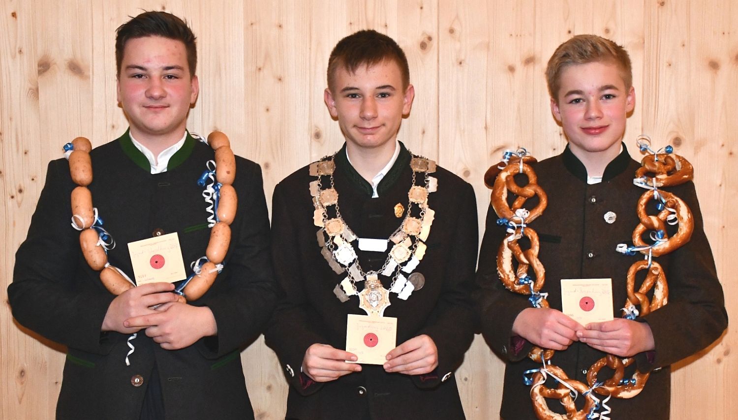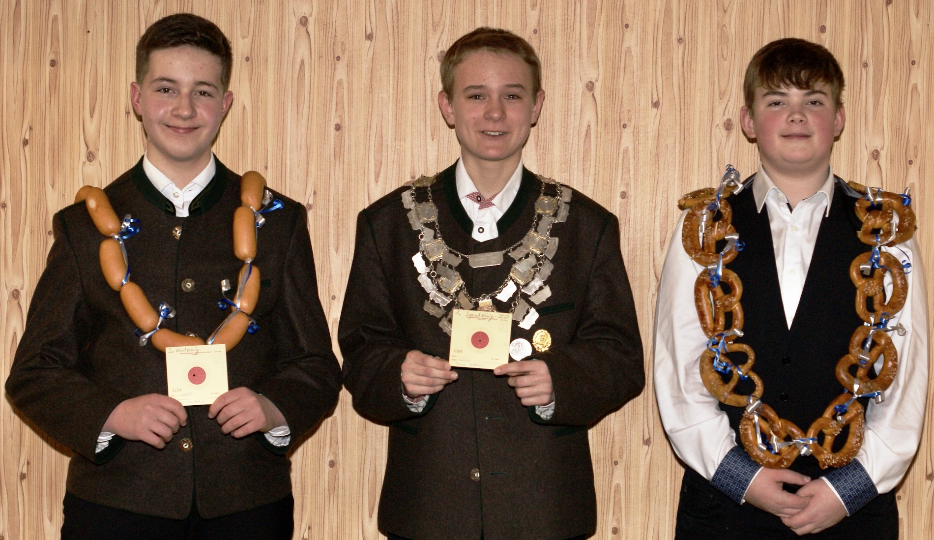 v.l.n.r.: Jugend-Vize-König Max Wurm, Jugendkönig Lukas Thoma, Jugend-Brezen-König Bernhard Weinberger