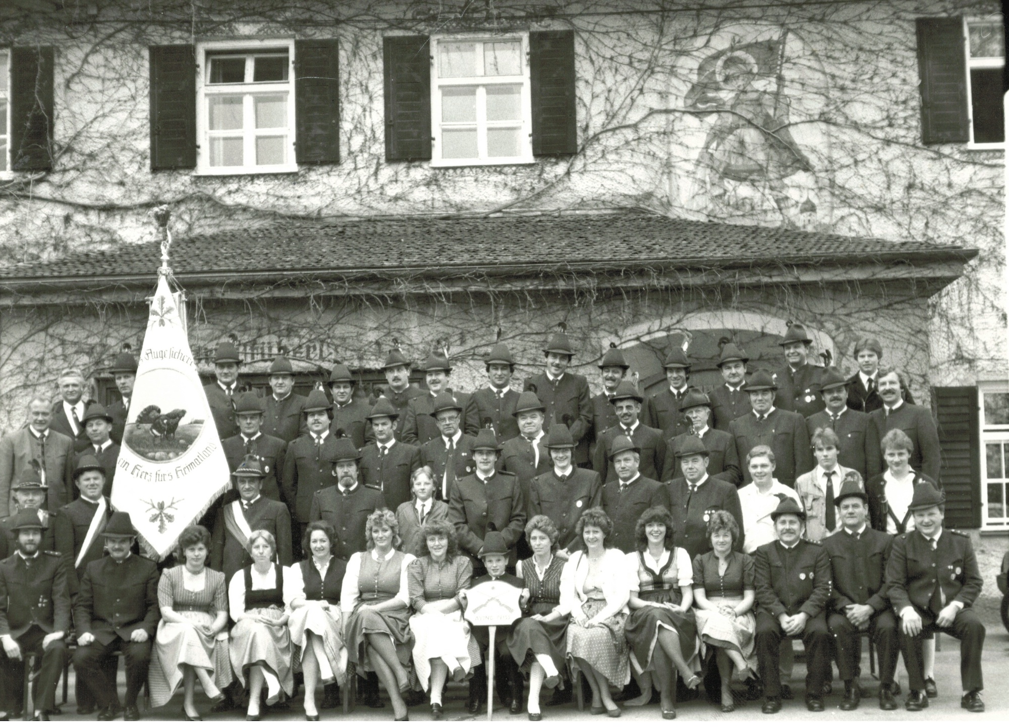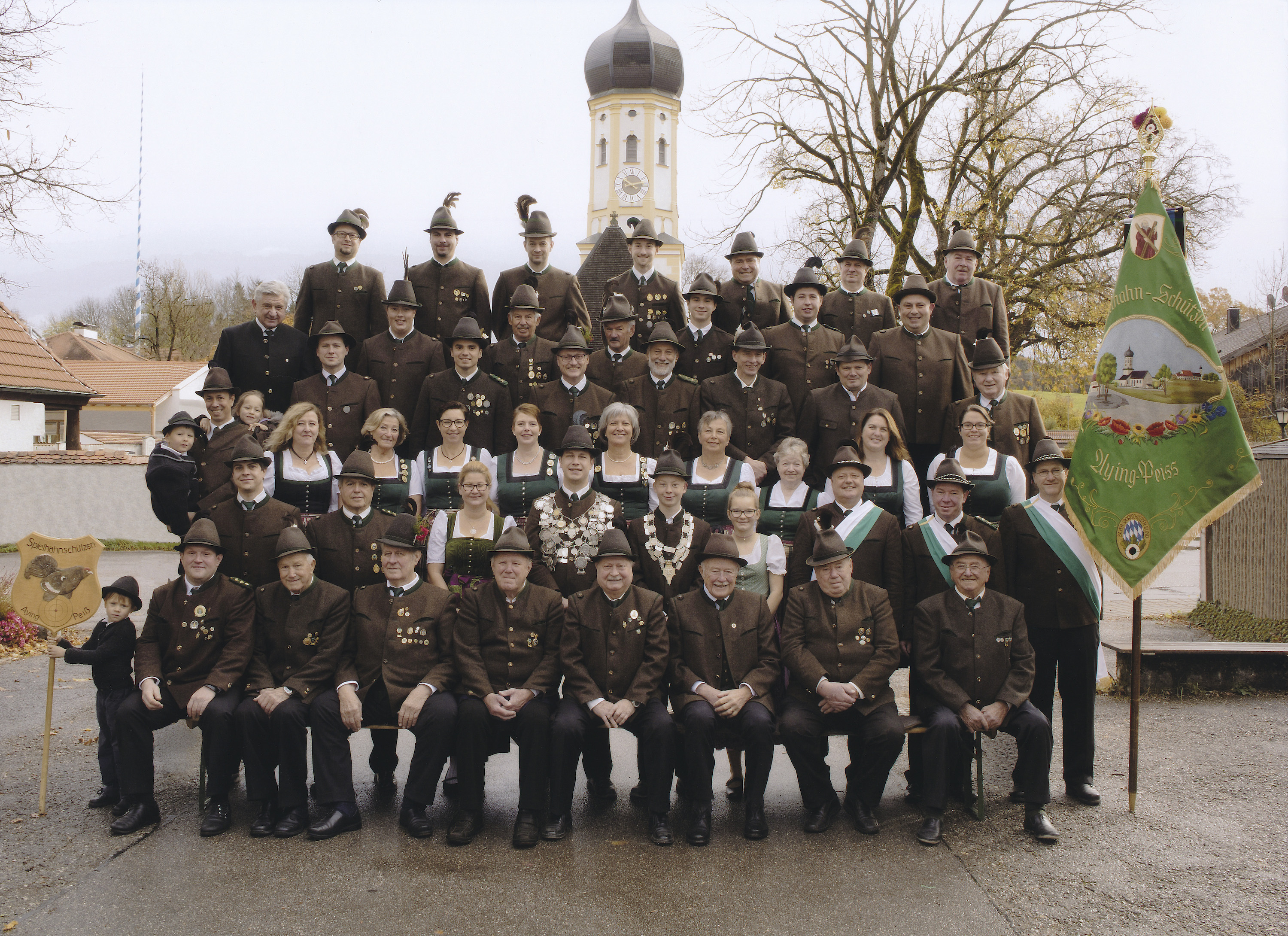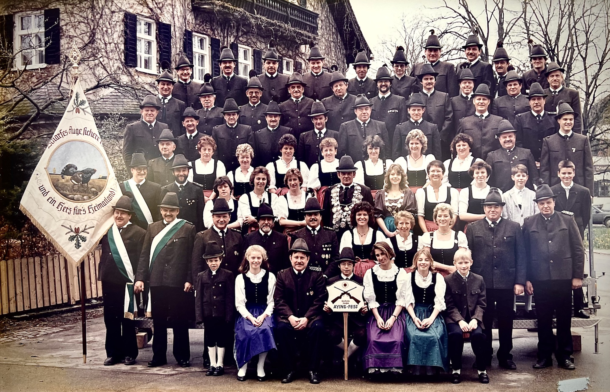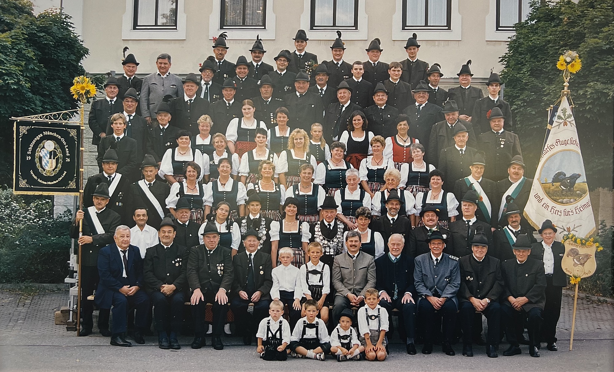 1. Reihe (unten) v.l.: 2. Schützenmeister Görk Hans, Seger Robert, Katzmair Gisela, Seger Irmi, Vodermair Inge, Reimering Renate, Porkert Eveline, Katzmair Bernhard jr., Sohnle Gisela, Paster Sieglinde, Schoppel Angelika, Althammer Annemarie, 1. Schützenmeister Lechner Hans, Sautner Max, Katzmair Bernhard