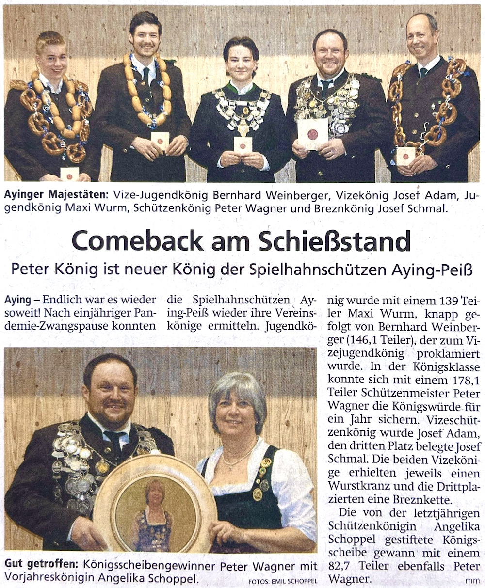 Peter Wagner ist neuer König der Spielhahnschützen Aying-Peiß.